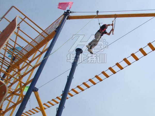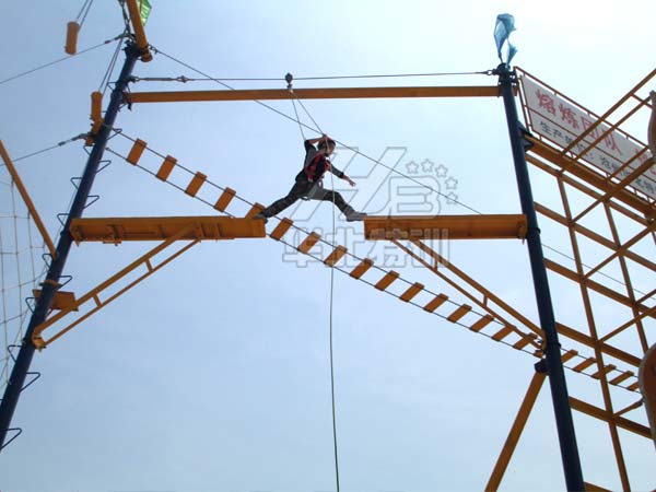 規(guī)格:占地17米×17米,由15個1米×1米×4米高的站臺組成。平臺高2米。起點和終點設有樓梯。   包含項目:獨木橋、勇往直前、圓木橋、圓木秋千、等…